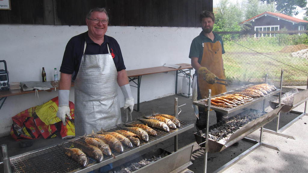 Wir haben uns so gerfreut! Wenn man weiß dass sich die Mühe lohnt, macht die Arbeit doppelt so viel Spaß. Vielen Dank an die vielen Kuchenbäcker, einer leckerer wie der andere. Vielen Dank an die vielen Helfer, die an allen Ecken mitgeholfen haben. Es musste ja auf Grund des Wetters schnell improvisiert werden aber pünktlich um 11 Uhr konnten die ersten Gäste ihre Fische in Empfang nehmen. Vielen Dank dass ihr trotz des Regens unter euren Schirmen sitzen geblieben seid und eurer bayrischen Gemütlichkeit alle Ehre gemacht habt... Klasse! Wir freuen uns auf das nächste Jahr.